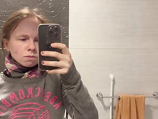Public Big Clit Masturbation in the Gym Locker Room Shower